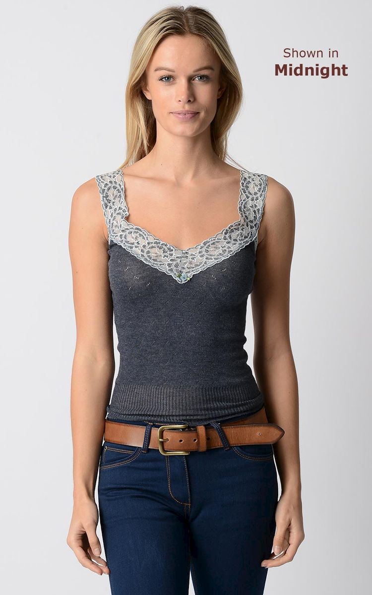 This lightweight design features our deep signature lace at the front, flattering wide straps and fine rib detail at the hem.